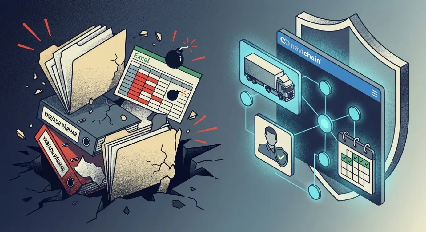 🇬🇧 Read this article in English Känner du igen den där gnagande oron mitt i natten: "Har vi verkligen förnyat alla certifikat?" För logistikchefer och åkeriägare är hanteringen av personalens tillstånd och utbildningar en ständig källa till stress och manuella kalkylblad har blivit en tickande bomb. Upptäck hur du