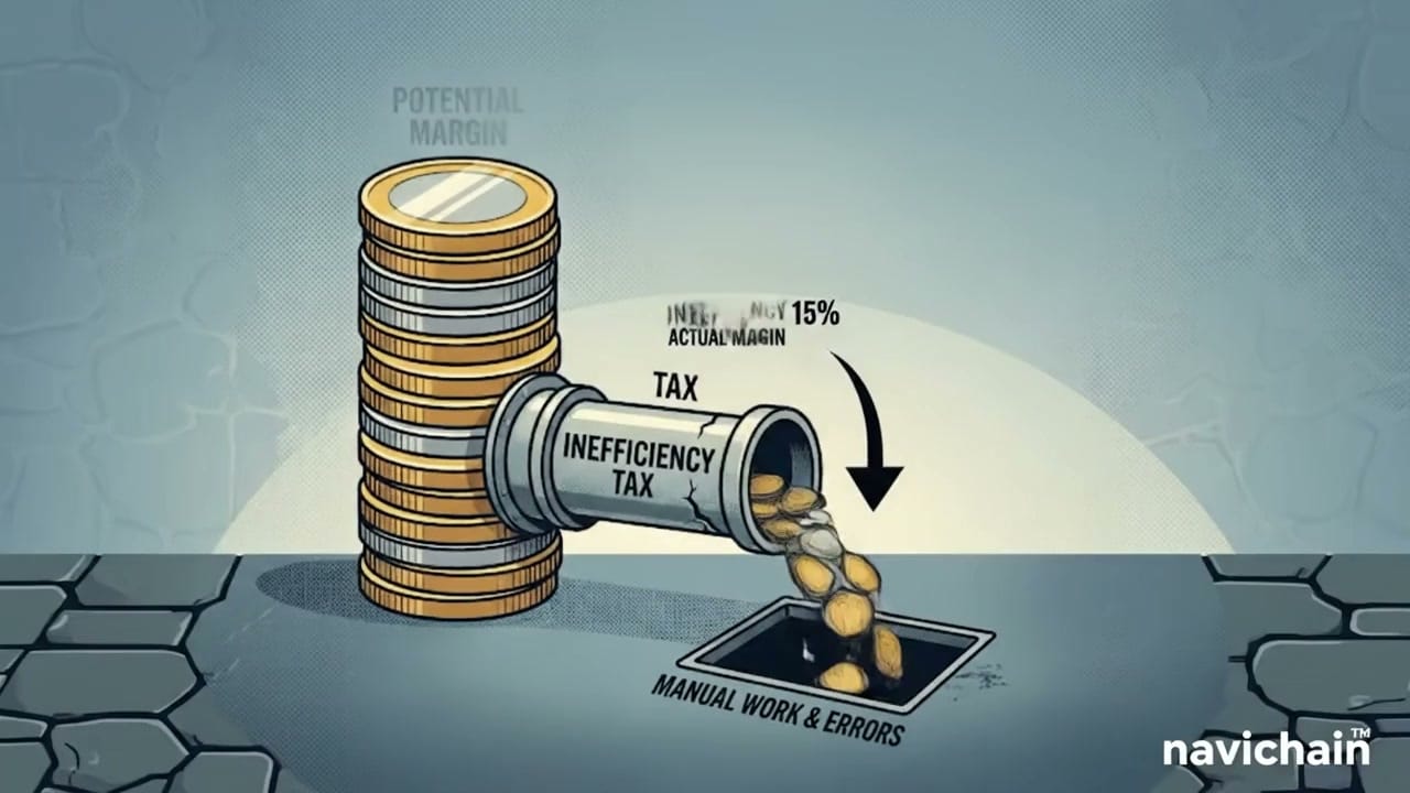 Sluta låt ineffektivitet dränera dina vinster! Lär dig hur "tveksamhetskostnader" påverkar din logistikmarginal och hur Navichain kan hjälpa dig att återta den.
