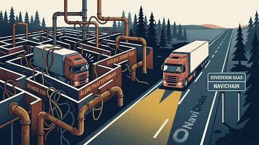 🇬🇧 Read this article in English Read in English Bild 1: Kapabilitetsmatrisen (Kvadrant 2) – navichain SaaS intar ledartröjan inom 'High-Automation' genom full pristransparens och ett kompromisslöst helhetserbjudande. Sammanfattning: Europeiska transport- och logistikföretag sitter inte sällan fastklämda mellan föråldrade legacy-system och otymplig enterprise-mjukvara. Lösningar från lokala jättar som Opter, Hogia
